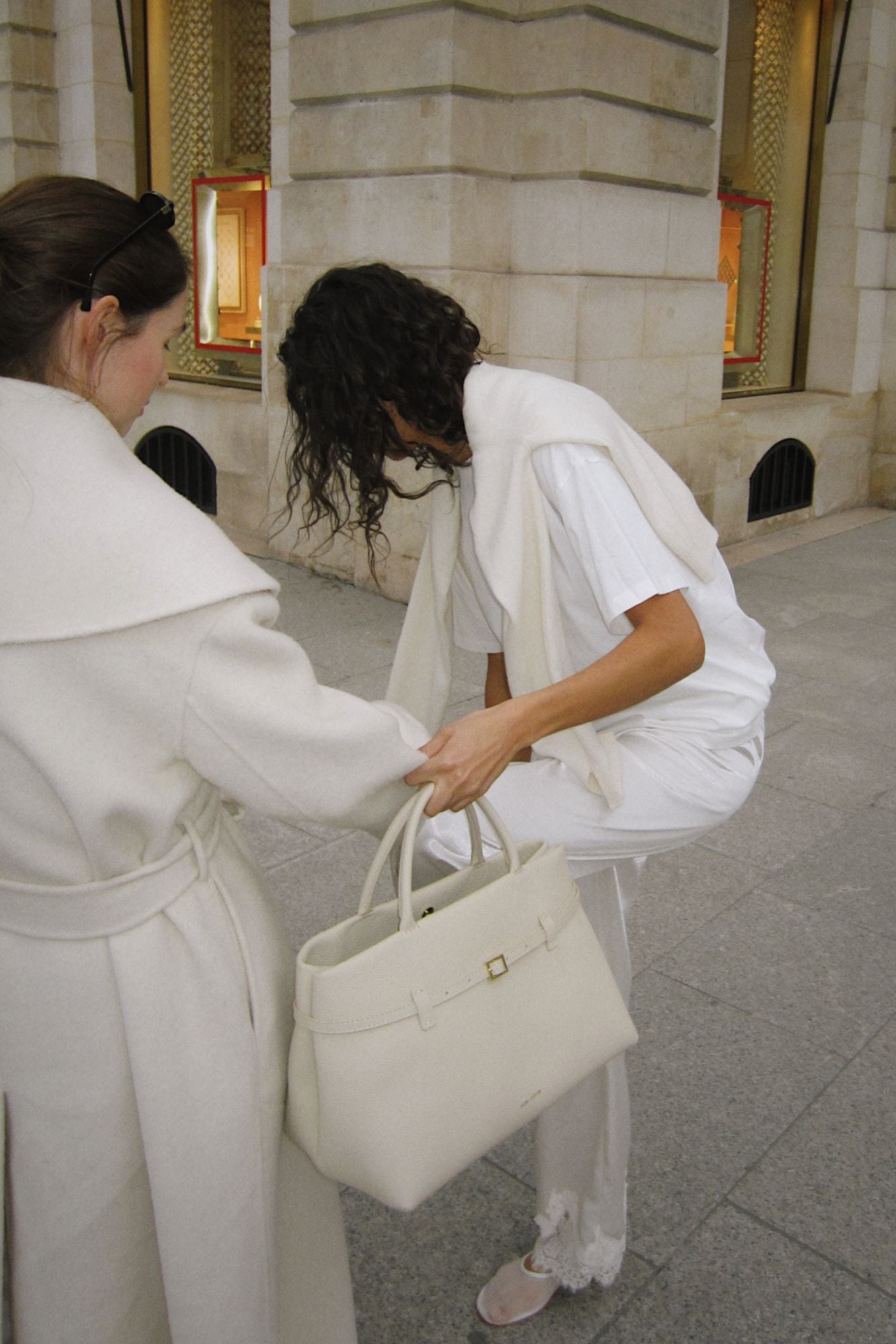 På trods af kulden og regnen skulle vi stadig skabe følelsen af forår og sommer gennem kameraet. Lette materialer, bløde farver og byens energi var med til at bringe varmen frem i billederne — selvom vi mellem skuddene stod pakket godt ind og forsøgte at holde os tørre.